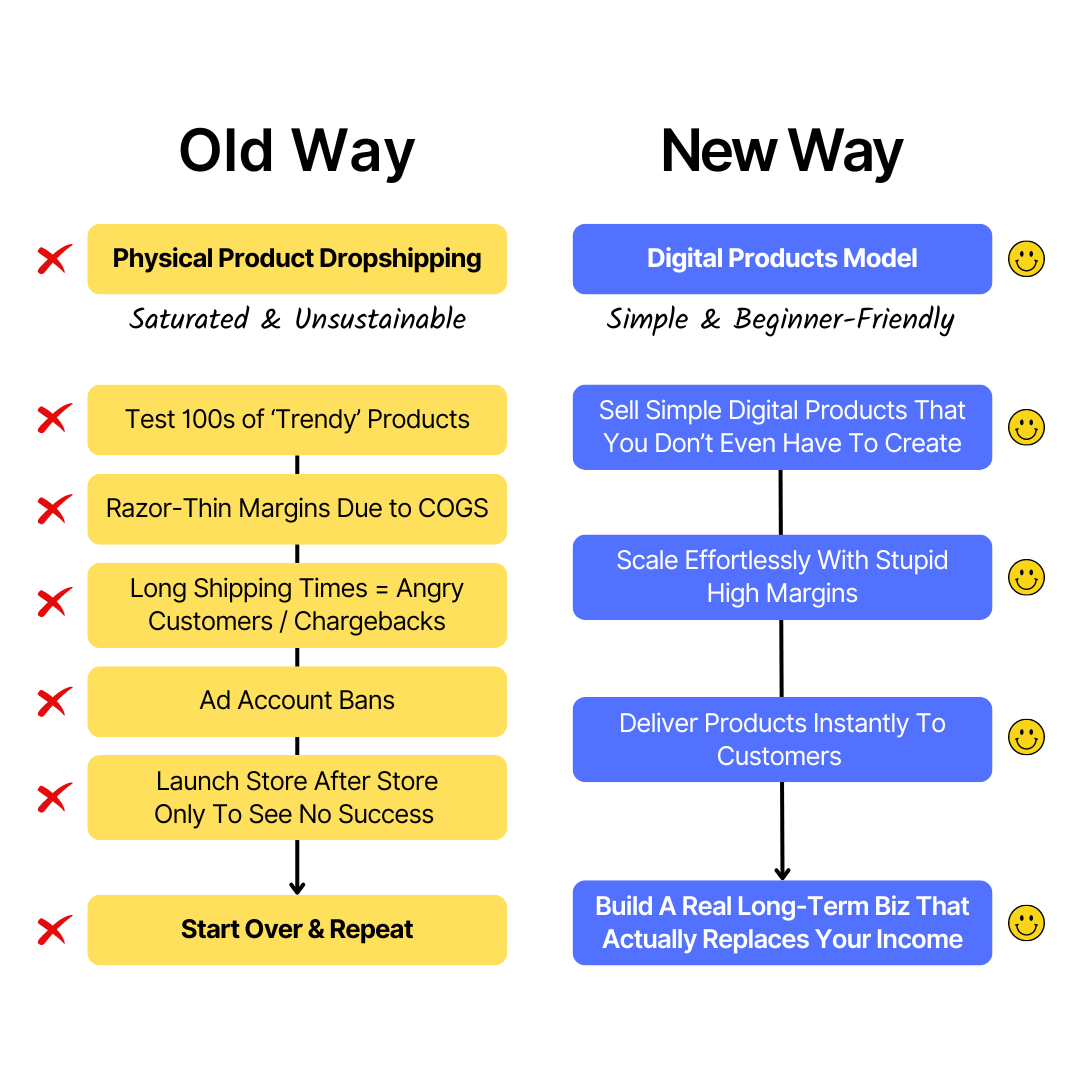 Everything you need to start making money as a digital dropshipper — how to build funnels that print cash, how to run ads that turn eyeballs into dollars, and how to scale your business.