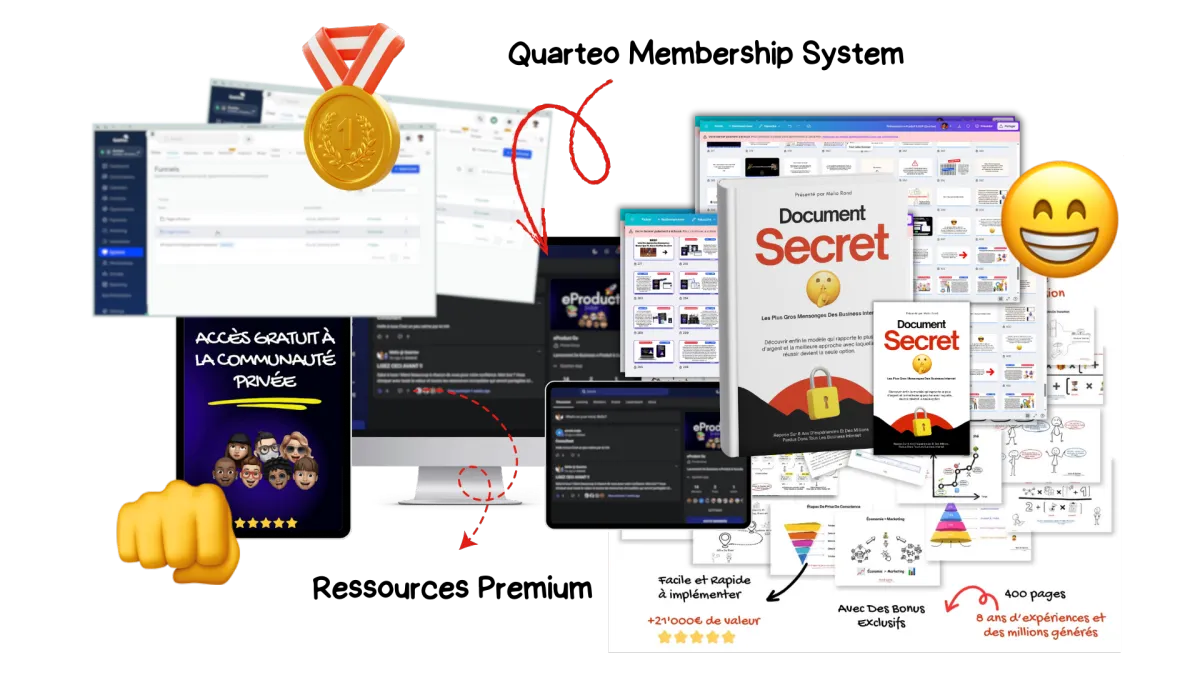 Et surtout tu auras ton propre Quarteo Membership System, un peu comme celui-ci. Tu peux juste l'installer, le personnaliser et le monétiser, au lieu de repartir encore de zéro.