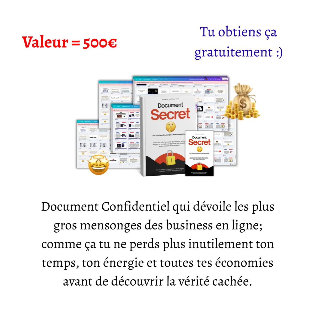 [Valeur : 500€] – Document Confidentiel qui dévoile les plus gros mensonges des business en ligne; comme ça tu ne perds plus inutilement ton temps, ton énergie et toutes tes économies avant de t'en rendre compte.